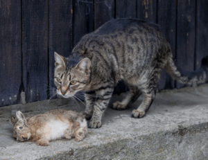 - Почему: крупнее, но всё равно потенциальная добыча; кролики особенно чувствительны к стрессу (могут заболеть), могут быть травмированы лапами/клыками кошки. Кролики иногда защищаются и могут укусить или копнуть.
