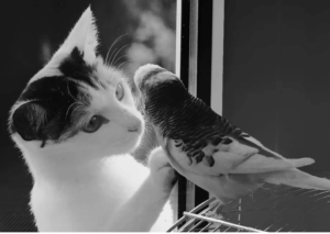 - Почему: птицы — натуральная добыча, лёгкая жертва; даже если кошка не убьёт, постоянный стресс птицы может привести к болезням. Птицы сильно напуганы котом → самоповреждение.